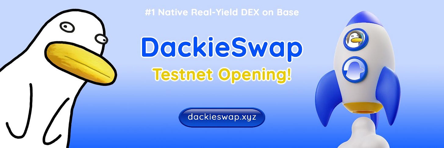 @DackieSwap 是 #Base 测试网上的DEX,非常早期的项目,功能尚未建立完全,但大家可以先做Swap以及LP提供,增加链上的交互次数。